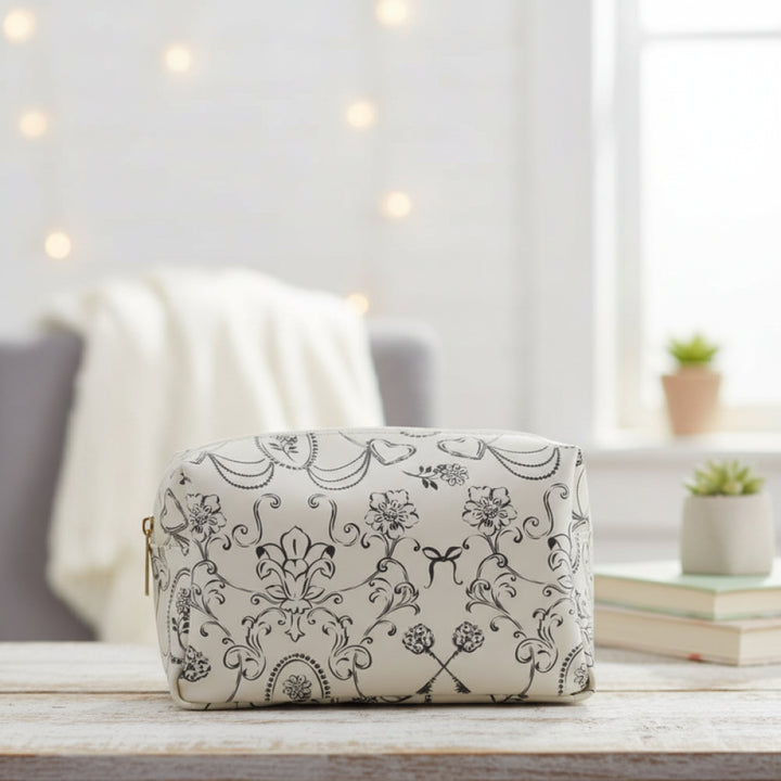 Black and White Floral Pattern Rectangular Cosmetic Bag