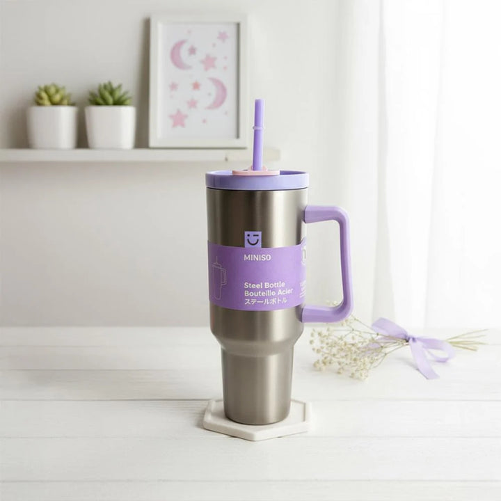 Dopamine Series Double Wall Steel Bottle with Handle & Straw 1200mL(Purple)