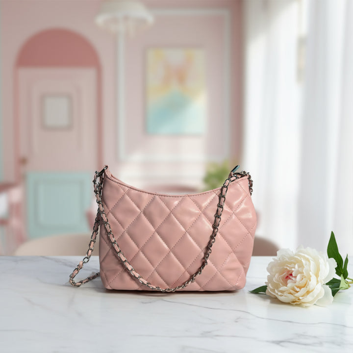 Rhombus Pattern Chain Shoulder Crossbody Bag (Pink)