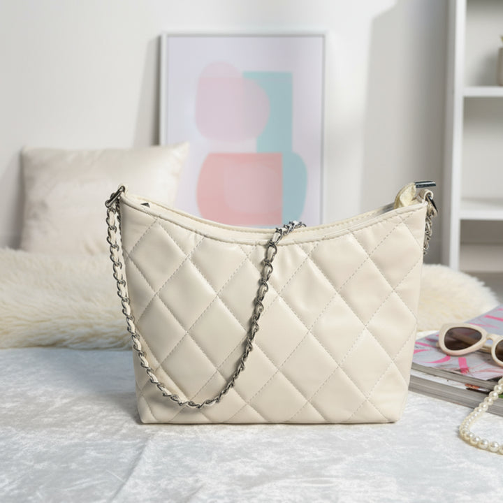 Rhombus Pattern Chain Shoulder Crossbody Bag (White)